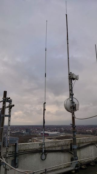 Antenne: Vertikal Halbwelle Höhe ca. 85m über NN