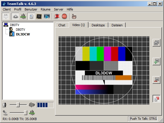 Unser TeamTalk-Server ermöglicht Audio- und Videokonferenzen mit sehr geringen Latenzzeiten über das HAMNET. Der auf Benutzerseite erforderliche Client beinhaltet dabei alle Funktionen in einer einzigen Software. Dadurch wird eine einfache und intuitive Bedienung erreicht. Das kostenlose Programm ist für viele Betriebssysteme wie Windows, Linux, Rapbian, Mac OS X sowie Cent OS erhältlich. Eine Version für Smartphones befindet sich in Vorbereitung. |